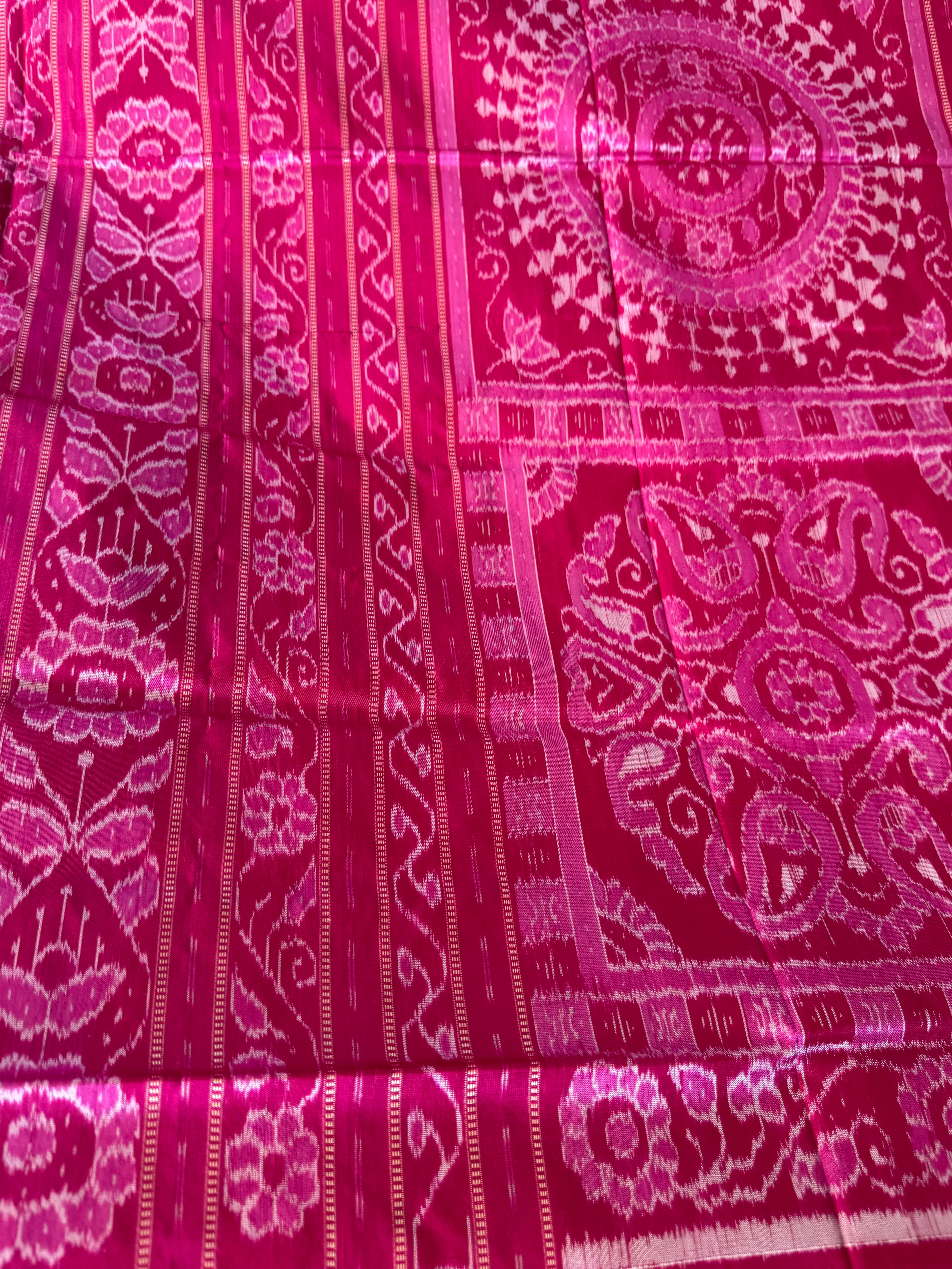 • Luxury handwoven mulberry silk Ikat saree from Sonepur, Odisha