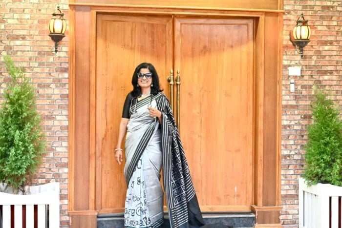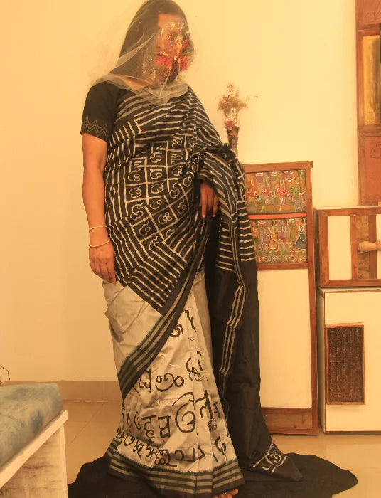 https://pencilforchange.com/products/grey_6-classical-languages-of-india-and-animal-planet-tie-dye-ikat-mulberry-silk-handwoven-hand-painted-patachitra-saree